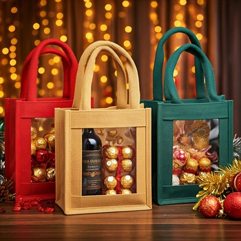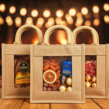 ถุงของขวัญปอกระเจาเป็นมิตรกับสิ่งแวดล้อมถุงปอกระเจา100% ธรรมชาติพร้อมหน้าต่างพีวีซีเหมาะสำหรับงานเทศกาลกิจกรรมส่งเสริมการสร้างแบรนด์